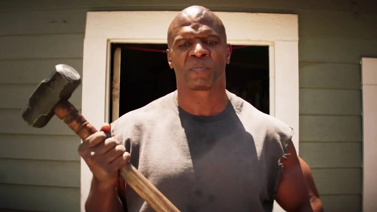 Terry Crews is one of my favorite performers in Hollywood. Really, I should say actor – he’s been known to take smaller roles in frankly garbage movies that utilize his size and physicality, and I don’t know if they can be considered acting. I sat still like Stonehenge during Adam Sandler’s “Click” with the exception of Crews’ dancing cameo. In those wretched “Expendables” movies, Crews’ Hale Caesar was the only character I would have willingly followed offscreen. For all his goofy short appearances, however, he was nimble and dynamic in four seasons of “Everybody Hates Chris”. And for all the iconography of his appearance, there’s a reason that the most unforgettable part of Mike Judge’s “Idiocracy” is his President Dwayne Elizondo Mountain Dew Herbert Camacho.
