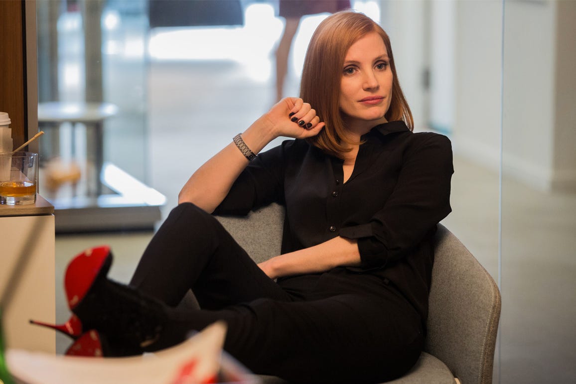 You know this is from a more optimistic time because it begins with Miss Sloane having to testify in Congress for ethics violations. Remember when Washington used to hold people responsible for their crimes? This was filmed before the 2016 election, and once Donald Trump was elected, this film opened weeks later to historically bad numbers for a wide release. The public has spoken: criming is coooool!